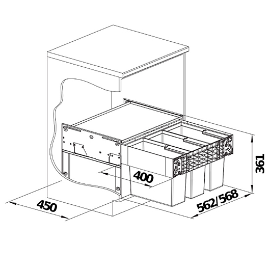 Система сортировки отходов SELECT II 60/3 от Blanco воплощает философию бескомпромиссного качества, инновационного дизайна и функциональности, превращая самое активное место на кухне в продуманный, эргономичный и эстетичный центр для приготовления пищи.