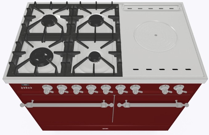 • Тип конфорок: 4 газовые конфорки, WOK конфорка, жарочная поверхность Coup de Feu