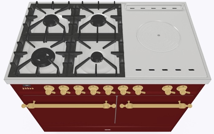 • Тип конфорок: 4 газовые конфорки, WOK конфорка, жарочная поверхность Coup de Feu