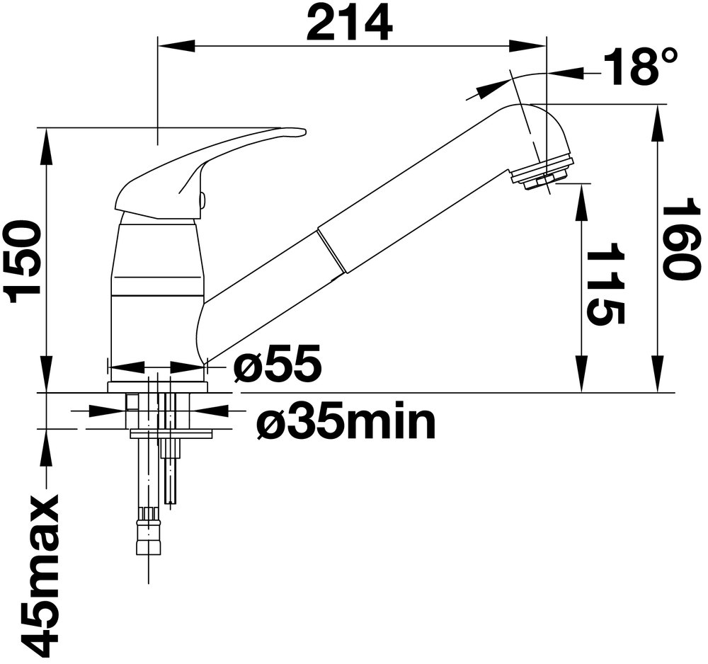 Высота излива, мм